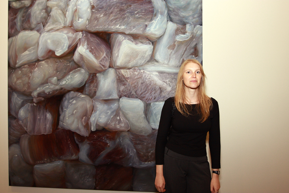 Cindy in front of her work.