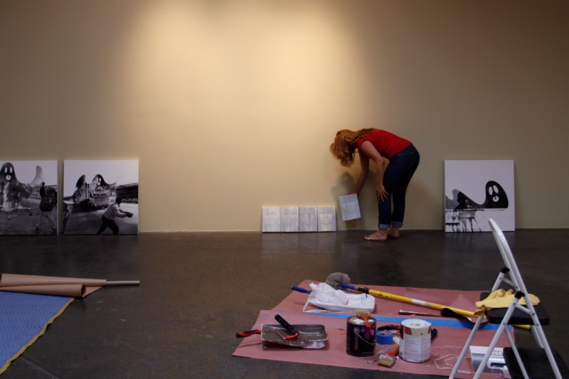 Ashley places the McGuinness canvases…