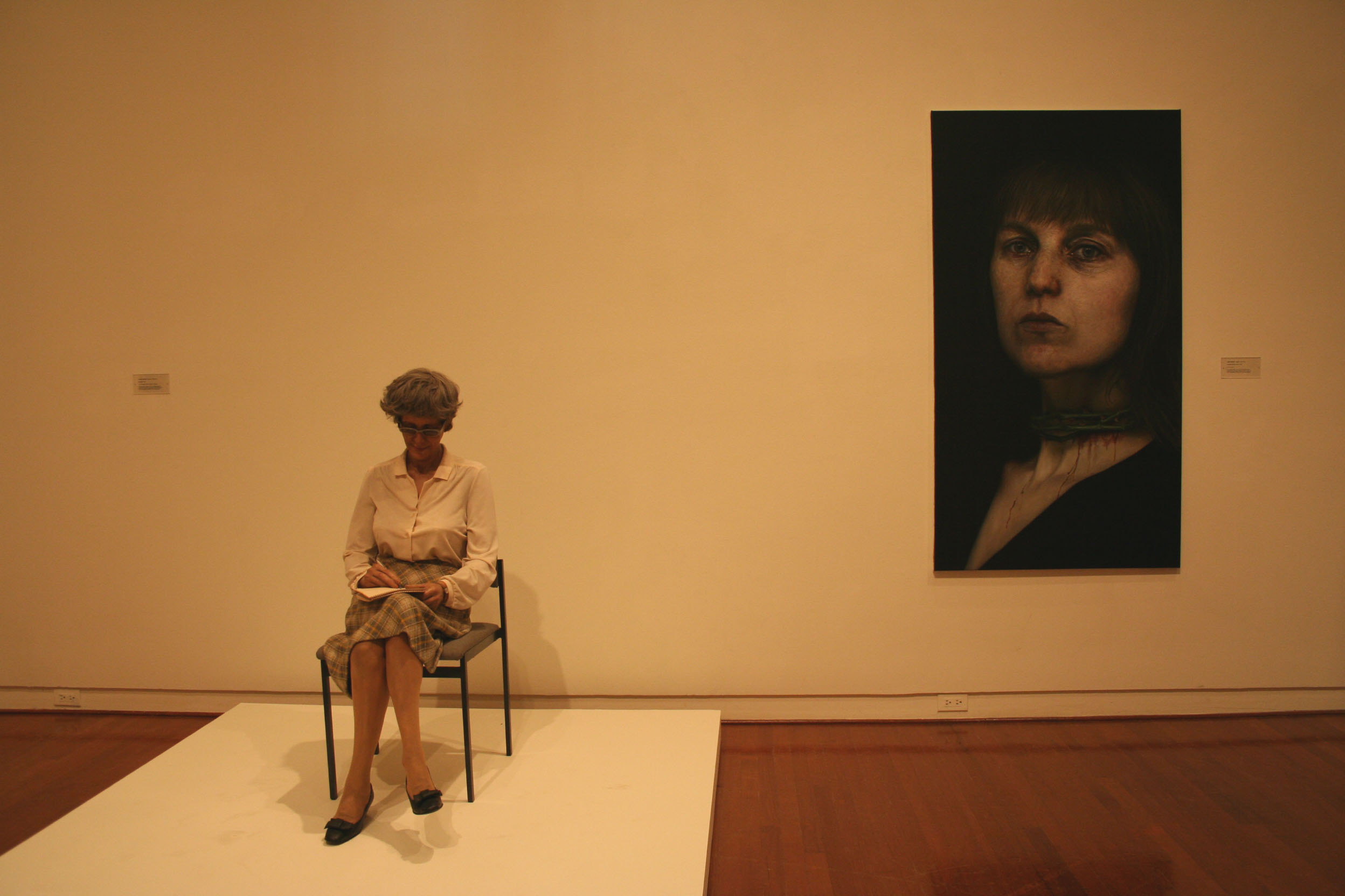 Cindy Wright’s “Untitled (Self Portrait)” found a rather nice home in the permanent collection of The Contemporary Museum (HI). Looks like it’s being well-guarded, too.