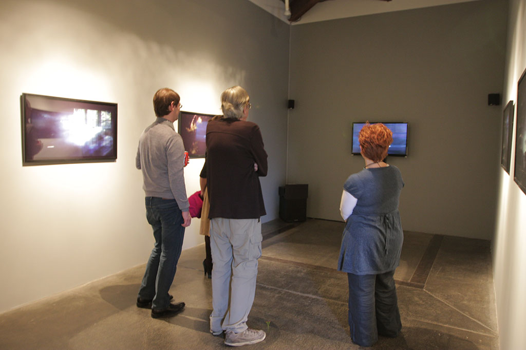 Josh Azzarella, a friend, and Kim Rugg check out the Project Room (L-R)