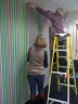 A special public installation by Tim Bavington garnered quite a bit of attention as well. Between the Vegas-strip-esque striped wallpaper and amorphous paintings, the corridor between the entrance and the coat check was transformed into a vibrating optical rabbit hole. Four of these studio-fresh works found homes on just Day One of the fair.