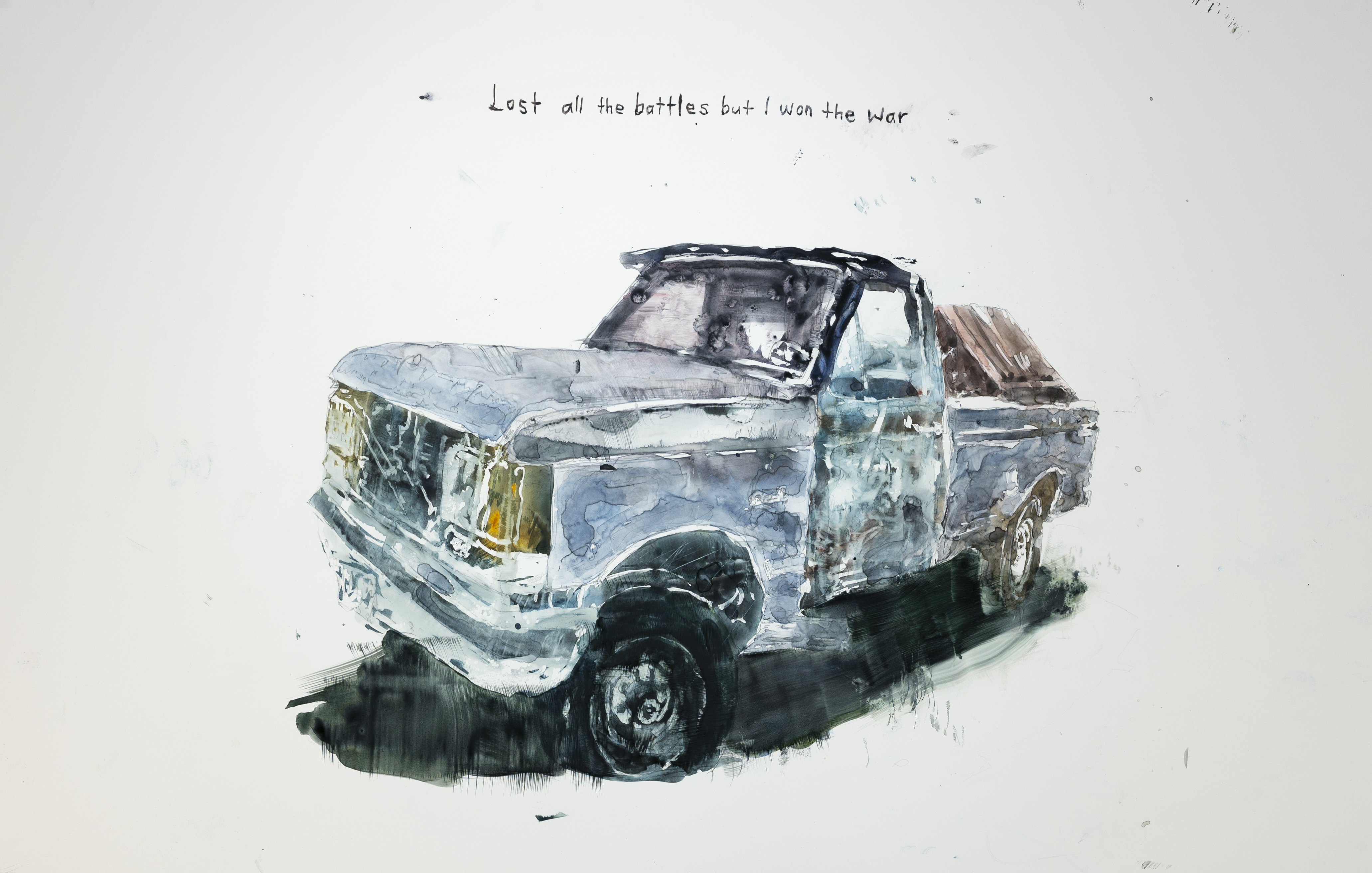 Mark Moore Fine Art proudly presents WINNER TAKE ALL, a solo exhibition of recent watercolor paintings by gallery artist David Rathman. Heralded for his critical analysis of masculine iconography, the artist has gravitated towards maverick characters such as athletes, rock stars, race car drivers, and ranchers. After numerous years of exploring the concept of the American cowboy, Rathman’s subject matter is slated to evolve after this last look into the mysterious, testosterone-driven psyche of the American West.