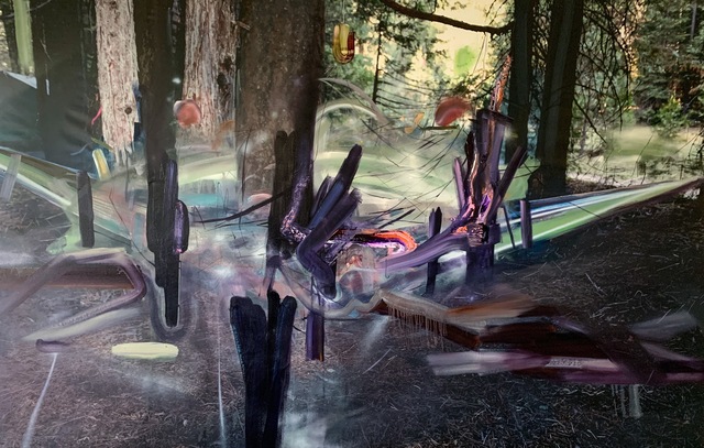 “Dildine takes his autobiographical archives and turns up the flash until it takes over the image like an alien invasion. His neon AbEx paint strokes dominate everyday family moments, capturing the energy and fury with which we scrutinize the past.”