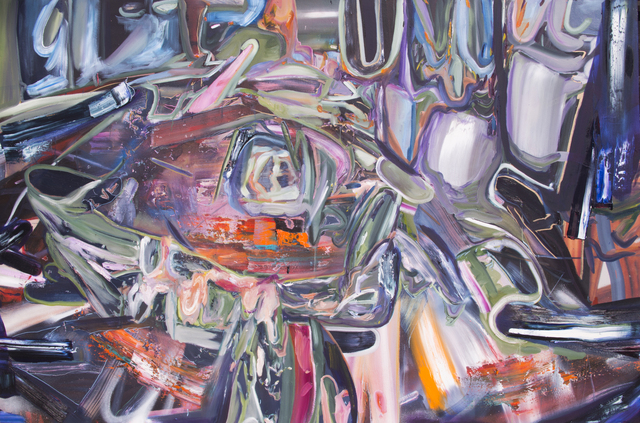 Merging found autobiographical photographs with viciously gestural painting, Joshua Dildine confronts the subject of conventional recollection and familial structure. A fixation shared by society at large, the contemplation of past events and relationships ultimately shapes our psychology moving forward – as a flicker of nostalgia, shame, or glee can be activated by a single sensory cue. With a purposeful cognizance, Dildine mines these memories for the underlying traits that forge our shared humanity: the humor found in the compromising, the endearment found in the aggravating, or the conflict found in the absent. His painterly swaths are as visceral as the family photos they conceal, his vivid palette alluding to the glaring absurdity of our incessant self-analysis and contemplation of the past.