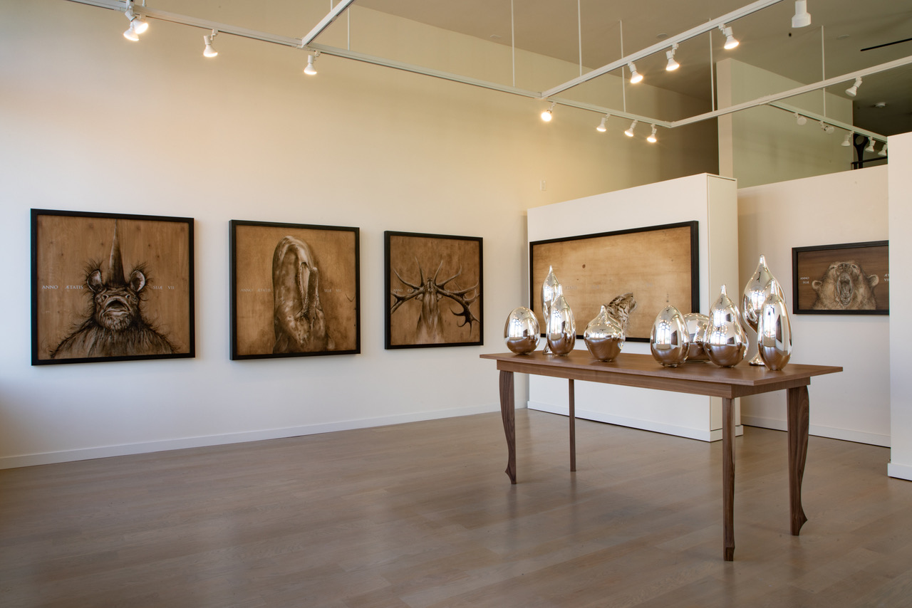 In the many animal portraits, and also reflections seen of oneself in-gallery, are the faces of mother nature. “Her One Voice” asks us to see ourselves as the solution and to take action in the best interest of all species.
