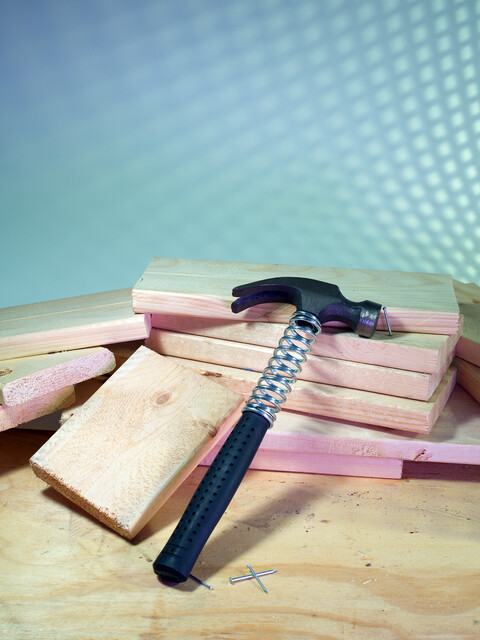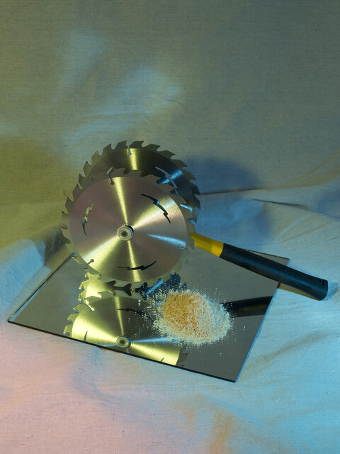 Modeled after the style of invention marketed on late-night television, “Prototypes” is part documentation for sculptures that no longer exist, part performative staging for the camera, and part commentary on advertisement photography’s often ignored aesthetic history. Prototypes is not strictly about the objects themselves, but how it is we encounter objects through pictures, how meaning is reliant on the style in which depiction is carried out. Each sculpture is a character in its own consumerist drama, complete with moody lighting, expressionistic gestures, and an elaborate set. All of these aspects work together through a sense of humor to question the interlocking relationships between photography, sculpture, commodification and desire.