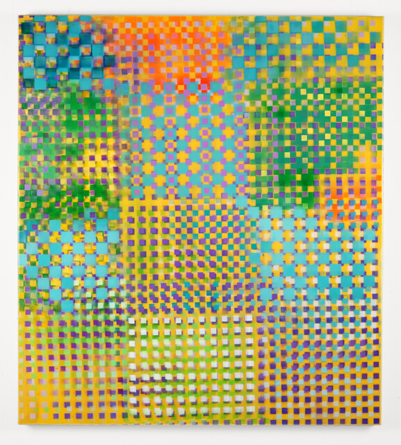 Alex Blau’s geometric paintings draw from a variety of sources and have unexpected associations. By variously utilizing graphic languages associated with things like disposable consumer goods, computer generated architectures and unfolding mandalas, Blau’s work both points to abstraction’s open-ended possibility and highlights its incorporation into mass culture.