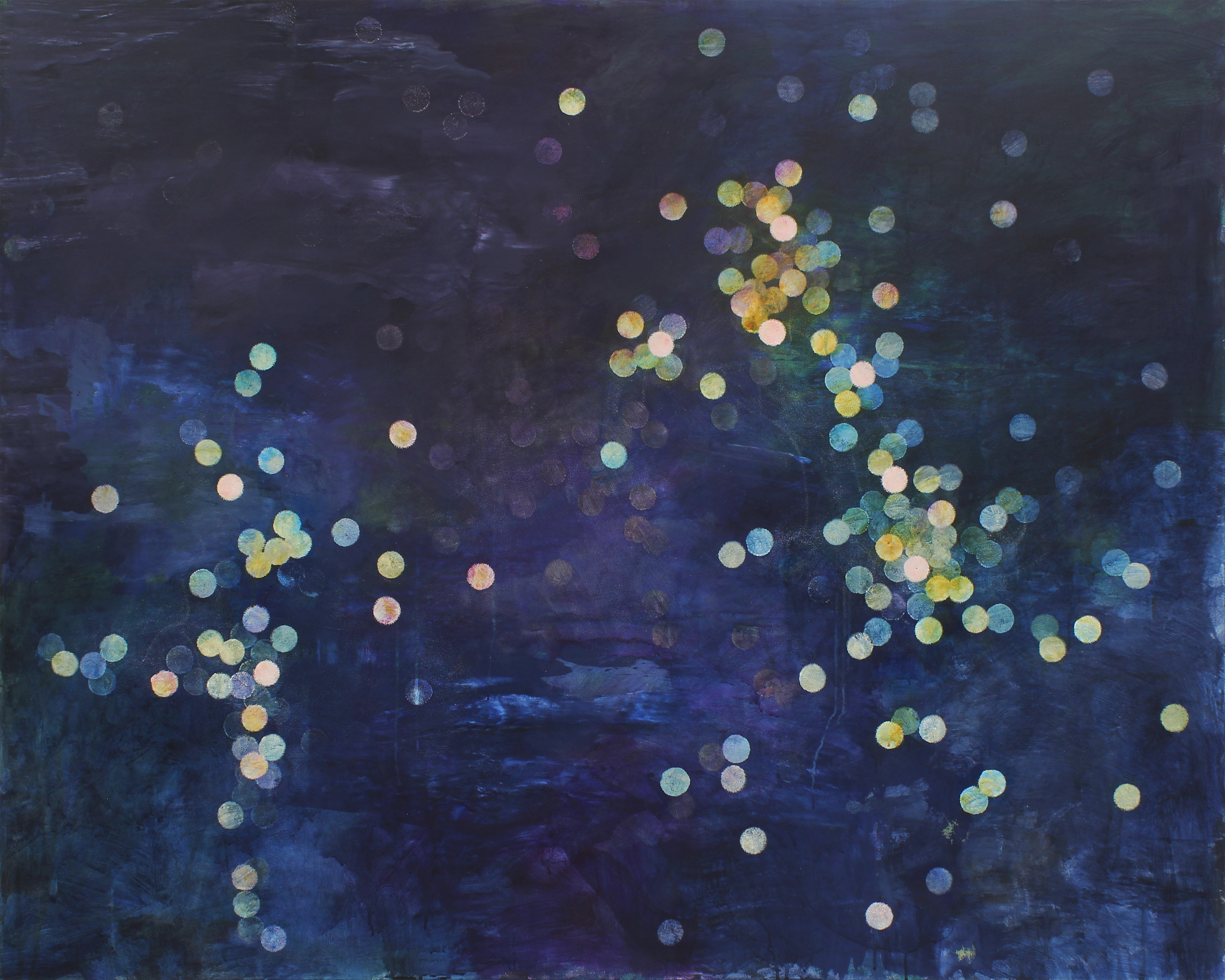 Johnson’s recent work – THE ATOMIC PAINTINGS – is inspired by the behavior of atoms and molecules, which cluster together to form something larger than themselves, and later break apart to become part of something new, then break apart again, and so on. The basic principles that dictate their behavior create endless drama and apply universally to entities both large and small.