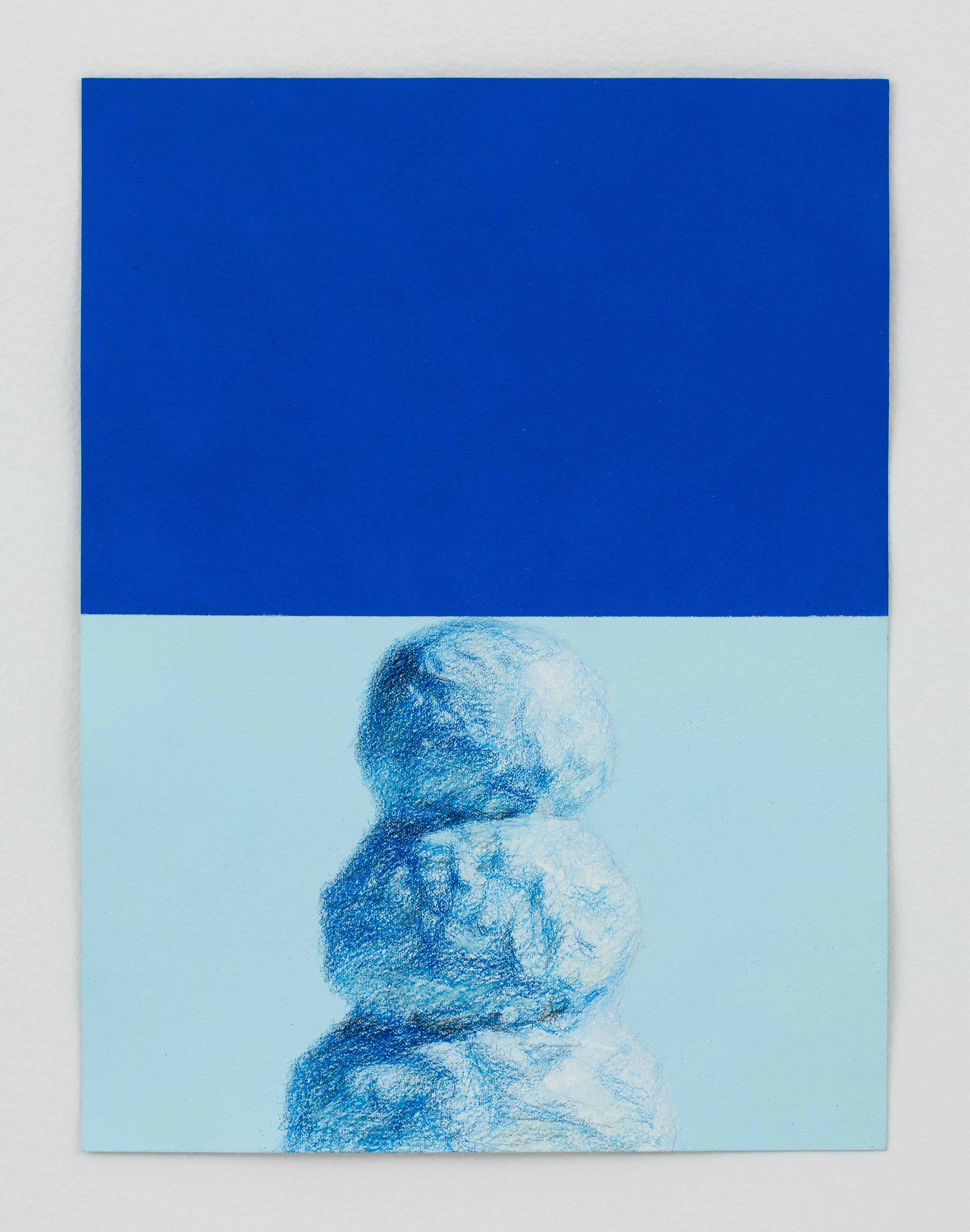 In making his works on paper, Hebert has always used a mix of media on a variety of papers. While the collection presented exemplifies this practice, many of the works in the exhibition are novel in that they were created by collaging separate, individually rendered images into one composition. This method of construction, new to Hebert’s working process, exaggerates the juxtapositions at play and fragments the compressed space that defines his work.