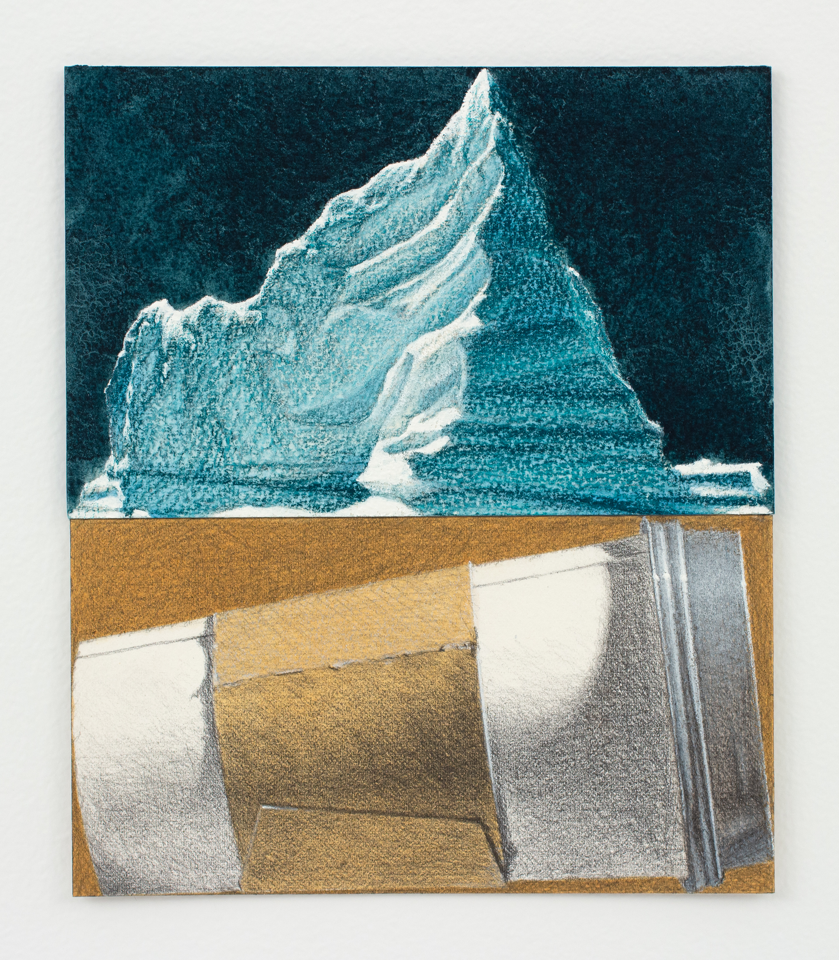In making his works on paper, Hebert has always used a mix of media on a variety of papers. While the collection presented exemplifies this practice, many of the works in the exhibition are novel in that they were created by collaging separate, individually rendered images into one composition. This method of construction, new to Hebert’s working process, exaggerates the juxtapositions at play and fragments the compressed space that defines his work.